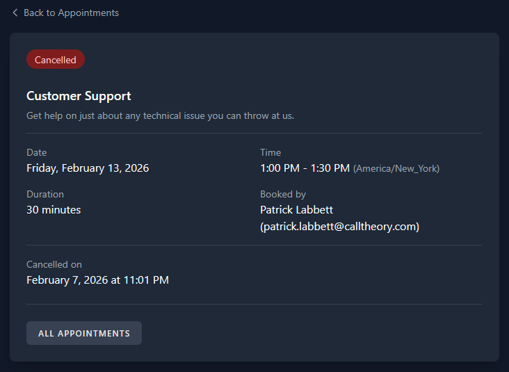 View cancelled, completed, and confirmed appointments