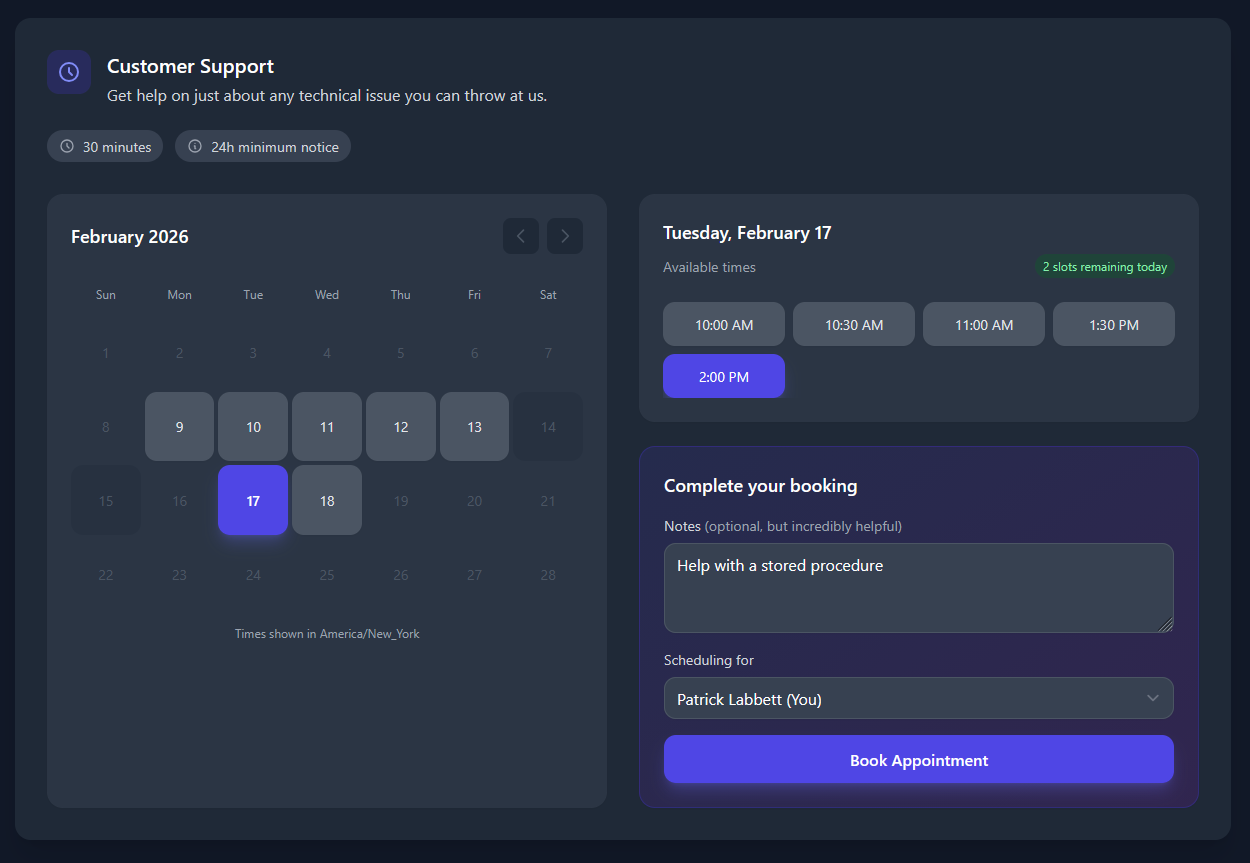 - Per-Team Availability, so we can provide after-hours appointments for our Enterprise customers.
