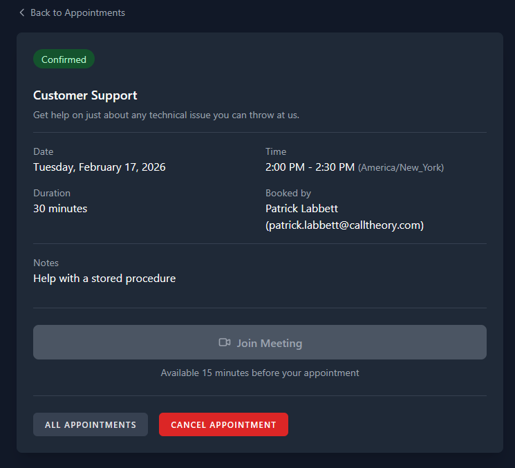- Team Owners/Admins can schedule and view appointments for their own Team Users