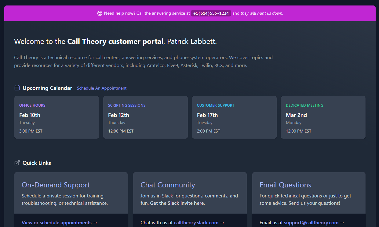 As an aside, the takeaway I intended was that we're working on improving our support logistics as we lead up to launching our own platform. Expect more support-adjacent functionality to be built into our customer portal as we move forward.